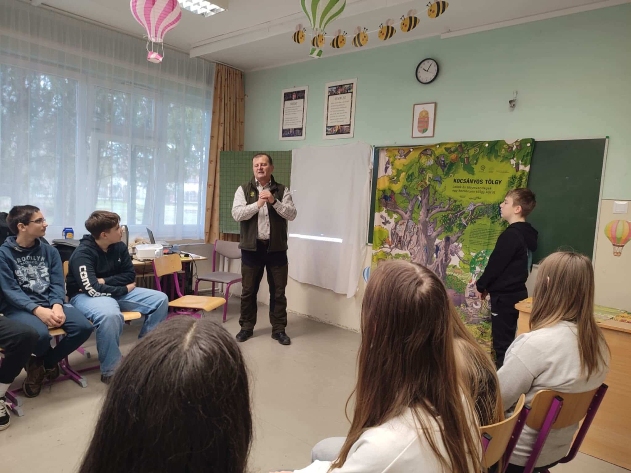 Ismét sikeresen pályáztunk és újabb felejthetetlen élményekkel gazdagodtunk az „Iskolában az erdő” program keretében. 2026. február 24-én délelőtt Jánosa László, a Szombathelyi Erdészeti Zrt. Stájer-házi Minősített Erdészeti Erdei iskolájának erdőpedagógusa harmadik alkalommal látogatott el hozzánk. A foglalkozásokon a 3. osztálytól a 8. osztályig vettek részt a tanulók. A program központi témája idén az erdő, mint önmagában fenntartható életközösség volt. Az erdő nem csupán fák csoportja, hanem egy rendkívül összetett, önszabályozó rendszer, amelynek motorja a biológiai sokféleség. A program célja ezúttal is az volt, hogy a gyerekek ne csak a tankönyvekből, hanem közvetlen tapasztalatokon keresztül ismerjék meg környezetünk értékeit és az erdő összetett körforgását. A tantermek falai között megelevenedett az erdő. A diákok interaktív feladatokon keresztül játszhattak és tanulhattak. A programnak köszönhetően újra rengeteg élménnyel és hasznos ismerettel gazdagodhattunk!